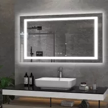 he recent addition of a state-of-the-art, illuminated mirror to my bathroom has revolutionized my daily routine. It's a marvel of design and technology, combining sleek aesthetics with functionality that anticipates and meets every conceivable need. At the heart of its appeal is the touch sensor functionality, a futuristic feature that activates and adjusts the LED lighting with just a simple touch. This intuitive interface invites interaction, making the adjustment of lighting not just easy but also a part of the modern luxury experience. The anti-fog technology embedded within is a testament to its thoughtful design. It ensures that the mirror remains clear and usable, even in the most humid conditions, a feature that proves indispensable in the rush of morning routines.