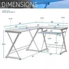 From the moment I unboxed this, I knew it was a perfect fit for my. The tempered glass surface is not just incredibly chic but also super easy to maintain and clean. It adds an element of sophistication that has truly elevated the aesthetic of my home office.The steel frame exudes sturdiness and durability – no wobbling or shaking when I'm working on important projects. This gives me confidence in its ability to support all of my essential work tools without any issues. One feature that stands out is the pull-out keyboard tray; it's such an addition that makes typing comfortable while saving valuable desktop space. Assembling this desk was straightforward with no headaches - a relief considering how daunting furniture assembly can be sometimes! What's more, its L-shape design fits perfectly into my corner space, maximizing room efficiency by freeing up so much needed workspace. This desk blends functionality with modern aesthetics beautifully and has made a significant difference to both my productivity levels and overall look of my home office setup.