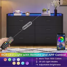 Upgrade your bedroom or living space with our Modern LED 6-Drawer Dresser, a perfect blend of functionality and contemporary style. This sleek black dresser is not just furniture; it’s an experience, ready to elevate your home decor and meet all your storage needs. Its integrated LED lighting system allows you to customize your space with over 60,000 colors, brightness settings, and dynamic modes, all controllable via a handy app or remote.