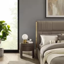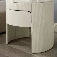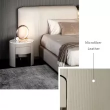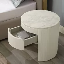 I recently purchased this table, and it has truly transformed the look of my bedroom. The round design is unique and adds a modern touch that sets it apart from traditional nightstands. The microfiber leather finish feels incredibly soft and luxurious, elevating the overall aesthetic of my room. The build quality is excellent. The table feels sturdy and well-made, ensuring that it will last for years. The spacious tabletop provides ample space for my lamp, books, and other bedside essentials. Additionally, the hidden storage compartment is a great feature, helping me keep my space organized and clutter-free. One of my favorite aspects of this nightstand is its versatility. It blends seamlessly with both contemporary and traditional decor styles. The neutral color of the microfiber leather complements my existing furniture beautifully, making it a versatile piece that can easily adapt to different interior designs. Overall, I am extremely satisfied with my purchase. This bedside table combines style, functionality, and quality in one elegant package. I highly recommend it to anyone looking to upgrade their bedroom furniture with a piece that is both unique and luxurious.