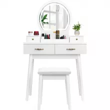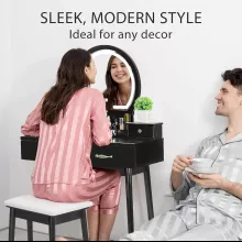 If you're someone who puts a high value on both fashion and keeping things tidy, this vanity set is gonna be right up your alley. It's the of investment that pays off in spades by making your life easier and more glamorous at the same time.One thing that stands out about this vanity set is how roomy the drawers are. We all know how easy it can be to makeup and beauty products, but with these spacious drawers, you'll have ample storage space for everything. You won't need to worry about clutter or not being able find what you need when you're trying get ready in a hurry.