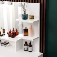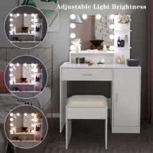 This vanity isn’t just a piece of furniture but a statement of style. It’s not only a space to prepare yourself for the day but also an addition that enhances your decor. The sleek, modern design, combined with functional storage and adjustable settings, makes it an indispensable part of your daily routine. Its capability to transform from a full vanity to a straightforward desk is ideal for adapting to your changing needs and spaces.