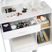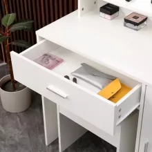 This modern white vanity table isn't just practical but also adds an elegant touch to any room decor. Its durable construction ensures long-lasting use which makes me confident about this purchase.