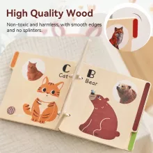 Perfect for toddlers and preschoolers aged 0-6 years, this learning book encourages early reading, visual recognition, and cognitive development. Its sturdy wooden pages make it safe for babies and toddlers, ensuring long-lasting use while providing a tactile, sensory experience. Each page introduces a new animal, helping children build their vocabulary and understanding of the natural world in English.
