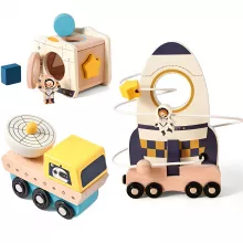 This toy set is more than just fun—it’s a thoughtfully designed educational experience. Inspired by Montessori learning principles, it encourages independent play, problem-solving, and imagination. The space-themed design naturally captures children’s attention, while the wooden construction provides a warm, safe, and durable feel parents can trust.