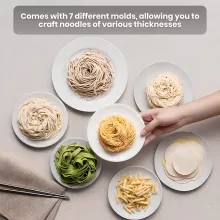 - Versatile Molds: Comes with 7 different molds, allowing you to craft noodles of various thicknesses. From spaghetti to fettuccine, your pasta dishes will never be monotonous.
