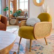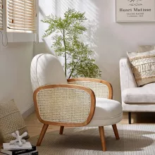 I am thoroughly impressed with this chair, which has proven to be a blend of artistry, comfort, and functionality. The first thing that strikes you is its elegant design, which showcases a perfect balance of form and function. The weave pattern is not only aesthetically pleasing but also constructed to ensure maximum durability and support. Sitting in the chair is a luxurious experience, thanks to the soft yet supportive cushions that conform to your body, providing an optimal level of comfort. It's an ideal spot for leisurely reading, watching TV, or simply relaxing in a peaceful environment. The chair's robust build ensures that it can withstand daily use, making it a practical addition to any home. Its design complements various interior styles, making it easy to integrate into different rooms and settings. The chair's quality is evident in every aspect, from the material selection to the finishing touches, ensuring that it remains a cherished part of my home for a long time.