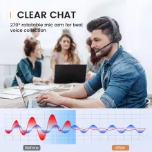 Designed for long hours of use, the headset features a lightweight frame and soft protein memory foam ear cushions covered in smooth leatherette. The adjustable headband ensures a secure, custom fit for most head sizes. Say goodbye to discomfort and focus on your tasks with all-day comfort, even during marathon meetings or call center shifts.