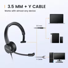 With its 3.5mm plug-and-play connection and included dual 3.5mm Y-adapter, this wired headset works seamlessly with laptops, desktop computers, tablets, and smartphones across multiple operating systems. Perfect for offices, remote work, online learning, and customer support centers.
