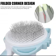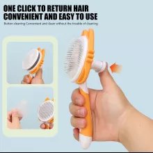 Turn everyday grooming into a relaxing bonding moment with this one-button self-cleaning pet brush. Designed for both dogs and cats, it removes loose hair, dirt, and tangles while gently massaging the skin. The smooth stainless steel pins glide through fur without pulling or scratching, making it ideal for pets with sensitive skin. Whether your pet has short, medium, or long hair, this brush keeps coats looking clean, healthy, and shiny.