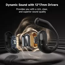Weighing just 0.3 oz per earbud, the lightweight open-ear design with soft, skin-friendly ear hooks feels barely there. They stay secure during workouts, runs, and long walks, offering lasting comfort even after hours of use. The IPX4 water- and sweat-resistant build makes them ready for intense training or everyday wear.