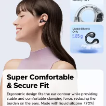Don’t let the open-ear style fool you. Inside, large 0.47-inch dynamic drivers with dual magnets create a wide soundstage with crisp highs and deep, punchy bass. Sound stays clear and detailed, whether you’re relaxing at home or on the move. Advanced audio tuning delivers fast response and reduced distortion for a smooth, enjoyable listening experience.