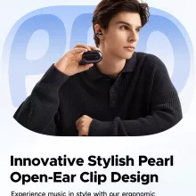 Experience a new way to listen with these innovative open-ear clip wireless earbuds. Designed to gently clip onto your ear cartilage, they feel almost weightless while delivering rich, balanced sound. The pearl-inspired design looks modern and elegant, while the flexible memory alloy bridge adapts naturally to your ear shape. Covered in soft liquid silicone, they stay comfortable even during all-day wear.