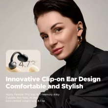 - Open-ear clip design for pressure-free comfort and awareness