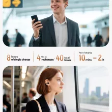 Listen longer with up to 8 hours of playback on a single charge and up to 40 hours total with the charging case. Short on time? A quick 10-minute charge gives you up to 2 hours of listening, so you are always ready to go.