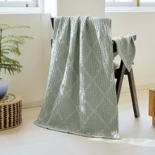 Made from 100% natural cotton, this towel absorbs water quickly and dries in as little as 15–20 seconds, making it ideal for busy mornings or on-the-go lifestyles. Whether stepping out of the shower, relaxing by the pool, enjoying a spa day, or packing for vacation, its soft gauze construction stays gentle on the skin and comfortable for all-day use. Its geometric yarn-dyed pattern adds a fresh, modern touch to your bathroom while remaining timeless and versatile.