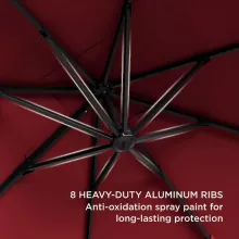 - Heavy Duty and Solid Construction: The thick aluminum pole and 8 heavy-duty ribs are coated with an antioxidant layer, ensuring durability and resistance to bending. This umbrella can withstand winds up to 20 mph.