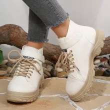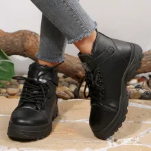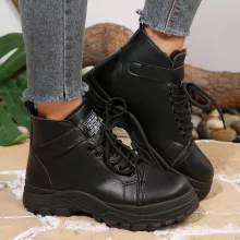 What truly sets these boots apart is the balance of warmth, practicality, and modern style. The chunky platform sole offers a slight lift of about 1.8 inches while maintaining a stable, flat feel. The rubber outsole delivers reliable traction, helping reduce slips on wet or snowy surfaces. A lace-up closure allows you to adjust the fit to your comfort, while the round toe design gives your feet plenty of room to move naturally.