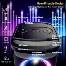 Experience music like never before with the Portable Bluetooth Speaker, boasting an impressive 160W peak power that delivers crystal-clear highs, rich mids, and deep, punchy bass. Whether you’re hosting a backyard barbecue, pumping up a party, or simply enjoying your favorite tunes, this speaker will elevate your audio experience to new heights. With dynamic RGB lighting that syncs to the beat of your music, it turns any room into an instant party zone, adding energy and excitement to every gathering.