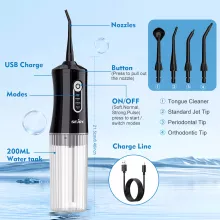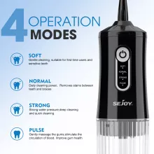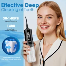 This water flosser is more than just convenient—it’s built to perform. The 200ml full-opening water tank is easy to refill and clean, ensuring no buildup of limescale. The 1400 pulses per minute deliver high-pressure water flow through a 360° rotating nozzle, designed to clean deep between teeth and along the gumline. Whether you have braces, implants, or sensitive gums, the 4 interchangeable nozzles and multiple cleaning modes provide a tailored experience for every mouth.