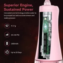 Whether you’re at home or on the go, this portable oral irrigator is built to fit your lifestyle. The compact design and USB rechargeable battery make it ideal for travel, while the large 12 oz (350 ml) detachable water tank ensures you can enjoy thorough cleaning without constant refilling. Plus, the IPX7 waterproof design means you can even use it in the shower.