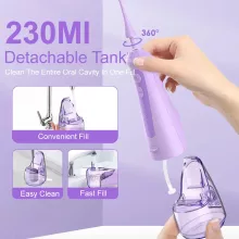 The large 9.1oz (270ml) detachable water tank lets you enjoy a full cleaning session without refilling. Its open and removable design makes it easy to clean and maintain, ensuring hygiene with every use. The ergonomic handle and 360° rotatable nozzle deliver effortless precision for braces, bridges, and implants. Compact yet powerful, this cordless flosser fits perfectly into your travel bag, making it ideal for home, work, or vacations.