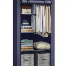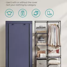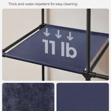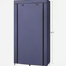 From shirts and jackets to pants, hats, and accessories, this organizer brings all your favorites together in one tidy space. The dark blue fabric cover adds a touch of modern charm while keeping everything behind a clean, zipped-up door. Just roll it down and zip it closed to protect your clothes from dust, spills, and unexpected messes. Lightweight yet strong, it holds up to 99 lb total thanks to metal tubes, durable connectors, and reinforced shelves—giving you dependable support for daily use.