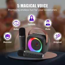 Turn every family gathering or playtime into a lively concert with this Portable Karaoke Machine with Wireless Microphones. Designed with children and families in mind, this mini Bluetooth speaker delivers fun, laughter, and music wherever you go. With its vibrant lights and dynamic sound, it’s the ultimate entertainment companion for birthdays, holidays, or spontaneous living-room performances.