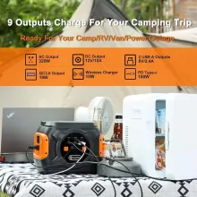 - Versatile Outputs: Includes 2 AC outlets, 2 USB-A ports, 2 DC ports, 1 QC 3.0 port, 1 PD 100W port, and a 10W wireless charger.