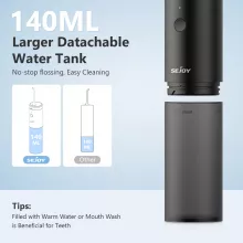 This water flosser uses a powerful pulse stream of water – up to 120 PSI – to remove food debris and plaque between teeth and below the gumline. With a pulse rate of 1400 times per minute, it gently massages your gums while improving circulation. The detachable 4.7 oz (140 ml) water tank provides enough capacity for a full, refreshing clean without constant refilling. Made from durable, high-quality ABS and PC materials, it’s built to last.