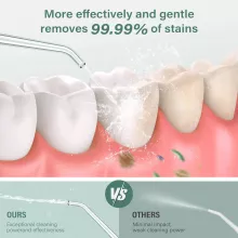- Deep cleaning power: Removes stubborn stains and food debris from between teeth and below the gum line.