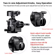 • Robust Aluminum Construction: Crafted from high-quality aluminum, this tripod head is both lightweight and durable, ensuring long-lasting performance.