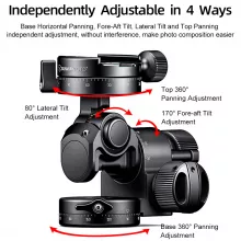 I've been using this tripod head for several months now, primarily for landscape photography, and it's been nothing short of exceptional. Its robust aluminum construction strikes the perfect balance between durability and lightweight design, making it an ideal companion for my outdoor adventures. The stability it provides, thanks to the geared mechanism, allows for precise adjustments and smooth panning, essential for capturing the dynamic beauty of nature. The quick release plate is another feature that I've come to appreciate, enabling me to switch between cameras effortlessly. Overall, this tripod head has significantly enhanced my photographic experience, providing reliability and flexibility in various shooting conditions.