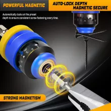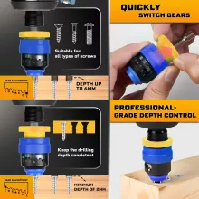 The auto-lock depth control ensures precise drilling depth every time, with an auto-stop feature that engages on contact. This makes the set especially useful when working on cabinetry, furniture, decking, or any project where depth consistency matters.