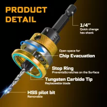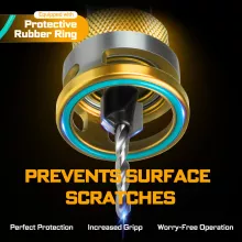 This countersink drill bit set is engineered to save you time while delivering consistent results. The 1/4″ quick-change hex shank allows fast bit swaps, while the open chip evacuation design keeps debris moving away from the work surface. A built-in stop ring and protective rubber ring help prevent surface scratches, so your finished work looks clean and professional.
