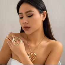 - Unique statement piece — Hollow heart pendant and rose ring make your look unforgettable.