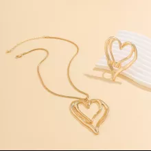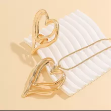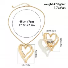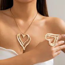 This jewelry set is crafted from durable iron chain material, giving it both strength and a retro vibe. The necklace showcases a large geometric hollow heart pendant, while the rose flower ring adds a touch of timeless romance. The set weighs just 1.8 oz (50 g), making it lightweight and comfortable to wear all day or night.