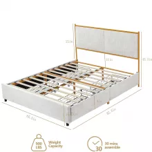 I recently upgraded my sleeping arrangement to this luxurious model, and it's been a game-changer. The first thing that struck me was the unique design of the headboard; its plush, pillowy appearance is not only aesthetically pleasing but also incredibly comfortable for reading or watching TV in bed. The fabric is soft and inviting, creating a cozy atmosphere in the bedroom. Additionally, the ample storage space provided by the built-in drawers underneath has significantly decluttered my room. These drawers slide smoothly and offer a substantial amount of room for bedding, clothes, or whatever else needs tucking away, making it an ideal solution for those with limited space. The overall build quality is impressive, with sturdy materials that promise durability. Assembly was straightforward, with clear instructions that were easy to follow. This piece of furniture has truly transformed my bedroom into a sanctuary of comfort and convenience, blending functionality with style seamlessly