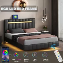I took the plunge and decided to revamp my bedroom with this LED upholstered platform bed frame, and let me tell you, it was the best decision I've made in a while! From the moment it arrived, the floating illusion design completely transformed my space, giving it that sleek, modern edge I've always dreamed of. The addition of LED lights isn't just a visual treat; it's revolutionized my nighttime routine with its cozy, adjustable glow and the USB charging ports right in the headboard are a lifesaver for someone like me who's always on their phone or tablet before bed. The setup was surprisingly simple, and I was impressed by how solid and well-made everything felt. This bed isn't just furniture; it's a statement piece that I'm confident will stand the test of time. Absolutely thrilled with my new bedroom look!😊