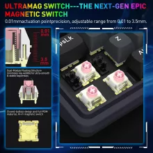 At the heart of this keyboard is advanced magnetic switch technology crafted from full POM material. Each switch uses a dual floating structure to reduce wobble and deliver consistent, buttery-smooth presses. The result is a clean, crisp sound and a solid feel that stays reliable even during intense gaming sessions. With adjustable actuation from ultra-light taps to deeper presses, you control exactly how fast your keys respond.