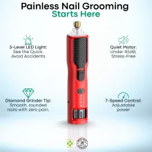 This nail grinder is best used during regular grooming sessions or whenever your pet’s nails become sharp or overgrown. The built-in LED light clearly illuminates the nail, helping you avoid sensitive areas and trim with confidence. The adjustable speed settings allow you to choose a slow, gentle grind for nervous pets or a faster setting for thicker nails. Its rechargeable design makes it perfect for quick touch-ups or full grooming sessions without cords getting in the way.