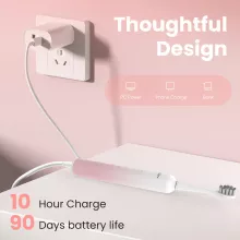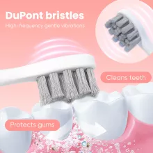 This electric toothbrush is equipped with a two-button control system, making it simple to switch between six modes and adjust strength. A built-in timer pauses every 30 seconds to remind you to move to the next area of your mouth, and automatically powers off after two minutes for the perfect brushing session. Designed with a soft DuPont bristle round head, it ensures gentle yet thorough cleaning that won’t harm gums. Plus, its IPX7 waterproof body allows for safe use in the shower and easy rinsing under running water.