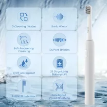 - Gentle yet powerful ultrasonic cleaning action removes plaque and brightens your smile.