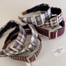 Bring a touch of timeless charm to your look with this Retro Brown Plaid Wide Headband. Designed with a soft plaid fabric and a stylish square button detail, this hair accessory instantly upgrades any outfit. Its warm brown tones make it the perfect match for autumn and winter wardrobes, while the wide-edged band adds a statement touch that balances elegance and casual appeal.