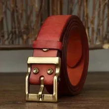 Built with a solid 3.8 cm (1.5 inch) wide strap, this belt delivers a sturdy feel that doesn’t compromise on flexibility. The genuine leather develops a rich patina over time, enhancing its vintage appeal. Its heavy-duty solid copper buckle adds a striking retro touch that’s both bold and timeless. Every detail—from the smooth stitching to the naturally textured leather grain—reflects expert craftsmanship made to last for years.