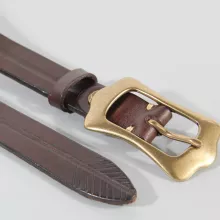 This belt is made from 100% real full-grain cowhide leather—no padding, no layers, no compromises. The natural texture of the leather ensures a soft yet sturdy feel that becomes even more beautiful with time. Its lead-free solid brass buckle not only enhances its retro personality but also guarantees strength and long-lasting shine. Each piece is carefully hand-checked to meet the highest quality standards, ensuring you get a belt that’s as durable as it is stylish.