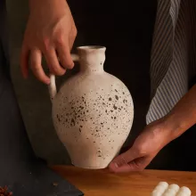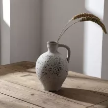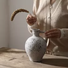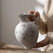 Transform your living space with this retro-inspired handmade ceramic vase. Its nostalgic charm and artisanal finish make it more than just a vase—it’s a statement piece that adds warmth and character to any room. Designed with a stylish handle, it blends practicality with visual appeal, offering a touch of old-world charm that never goes out of style.