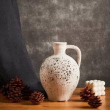 This ceramic vase is crafted with care, showcasing a smooth surface and sturdy design. Measuring in a convenient large size, it easily accommodates dried flowers, pampas grass, or simple decorative stems. The neutral retro tones make it versatile, complementing a wide range of home interiors, from rustic farmhouse to modern minimalism. Its solid ceramic build ensures durability while its handmade detailing highlights its uniqueness.