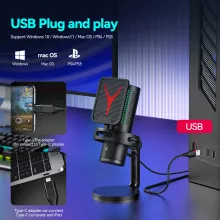Bring your voice to life with this modern condenser microphone designed for gamers, creators, and everyday users who want clear, powerful audio without complications. Whether you are streaming, gaming, recording vocals, or hosting a podcast, this microphone delivers clean sound with impressive depth and clarity. Its sleek design and glowing RGB breathing light instantly upgrade your setup and make your desk look professional and eye-catching.