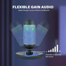 Everything you need is right at your fingertips. The microphone includes a one-touch mute button with a clear LED indicator, a gain control knob for quick adjustments, and a 3.5-inch no-latency headphone jack so you can monitor your voice in real time. The rotating, shockproof desk mount helps reduce vibrations and keeps the microphone positioned exactly where you want it.